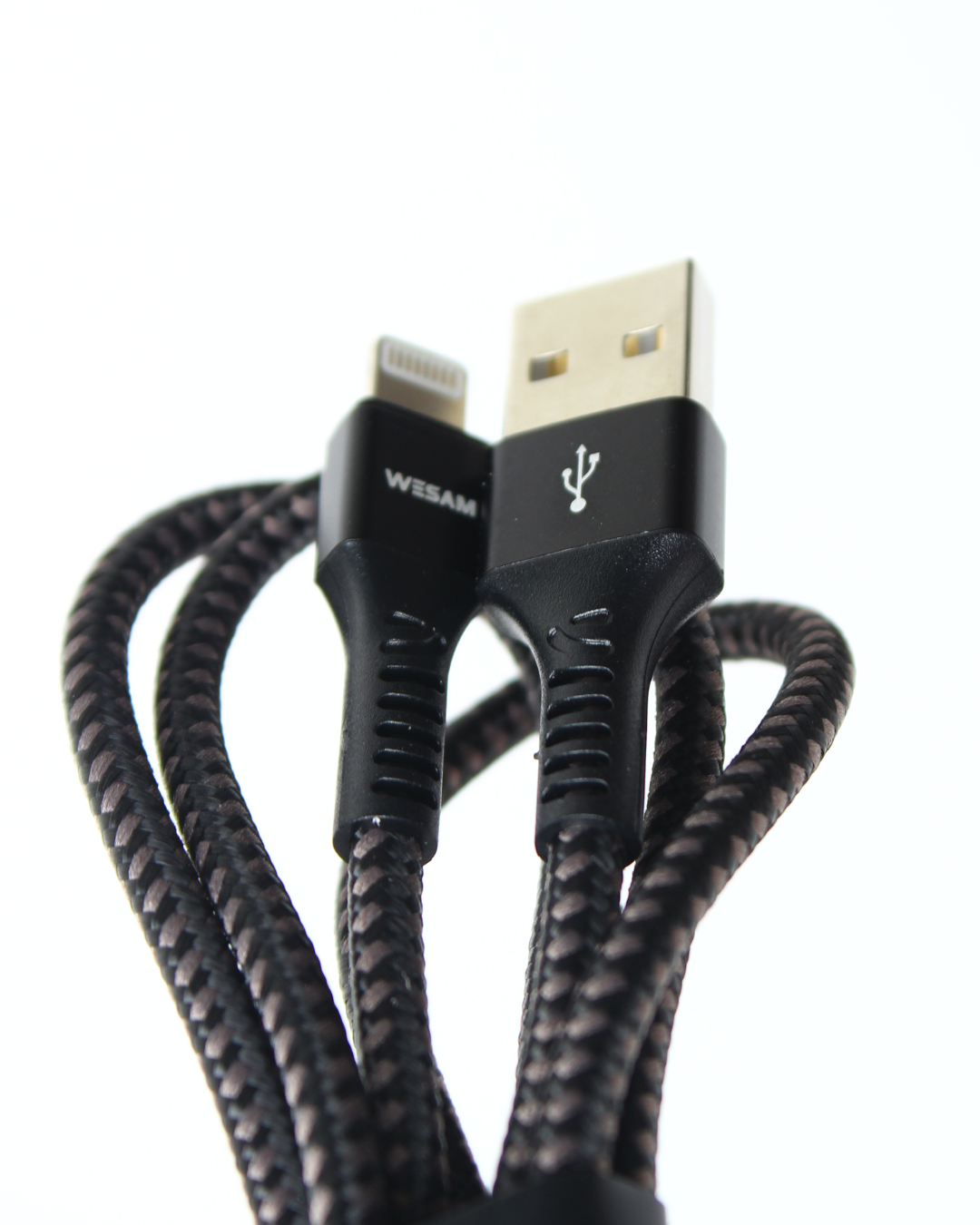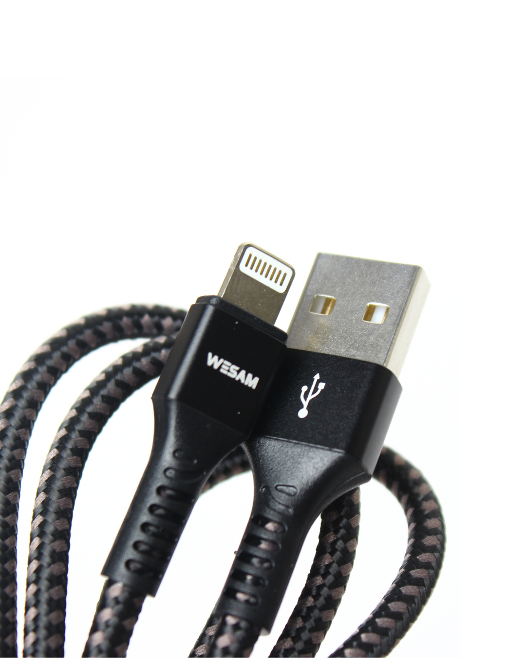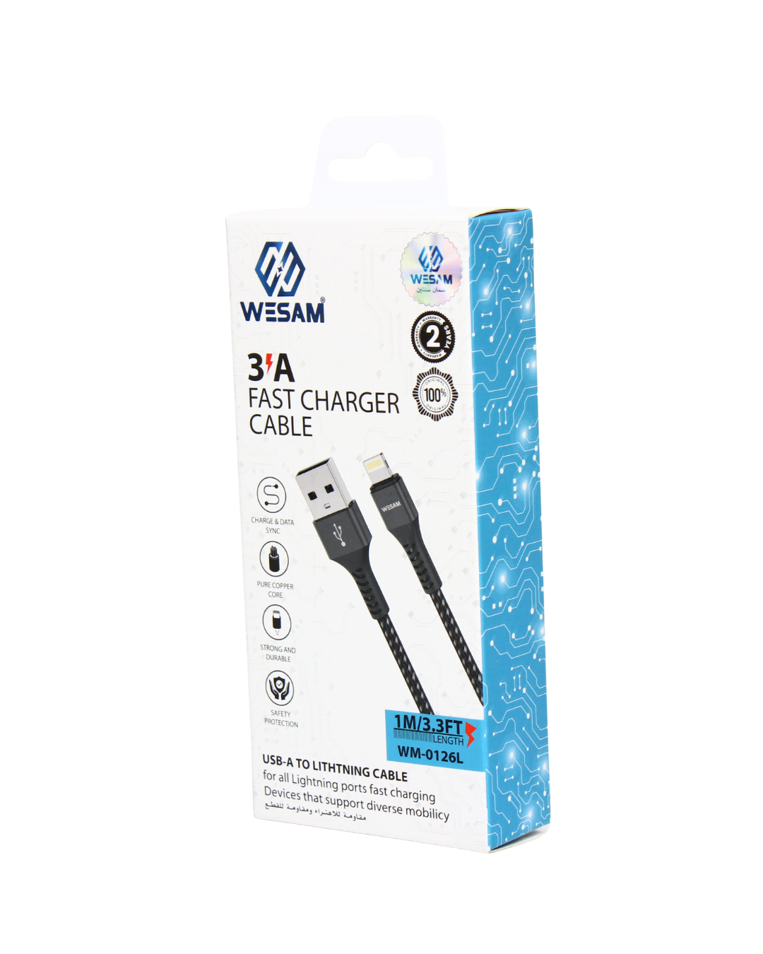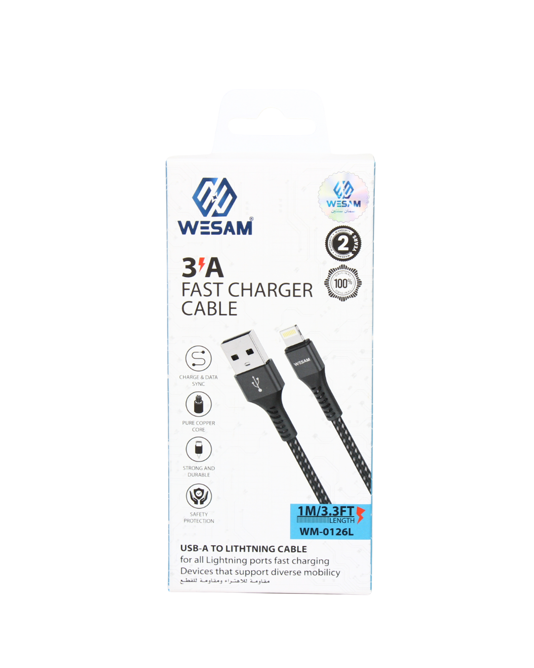 سلك شاحن قماش آيفون USB إلى Lightning – يدعم الشحن السريع 3 امبير، 1 متر | شحن سريع ونقل بيانات عالي السرعة من وسام سمارت